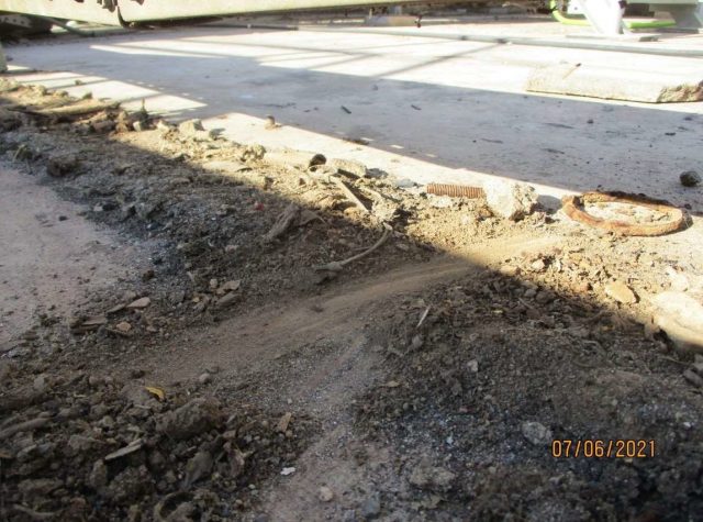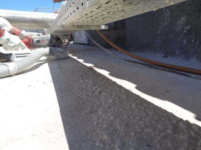As superfícies após limpas e reparadas foram maquinadas com equipamento com pratos diamantados com aspiração constante de modo a retirara todo o material deteriorado bem como a camada superficial carbonatada.