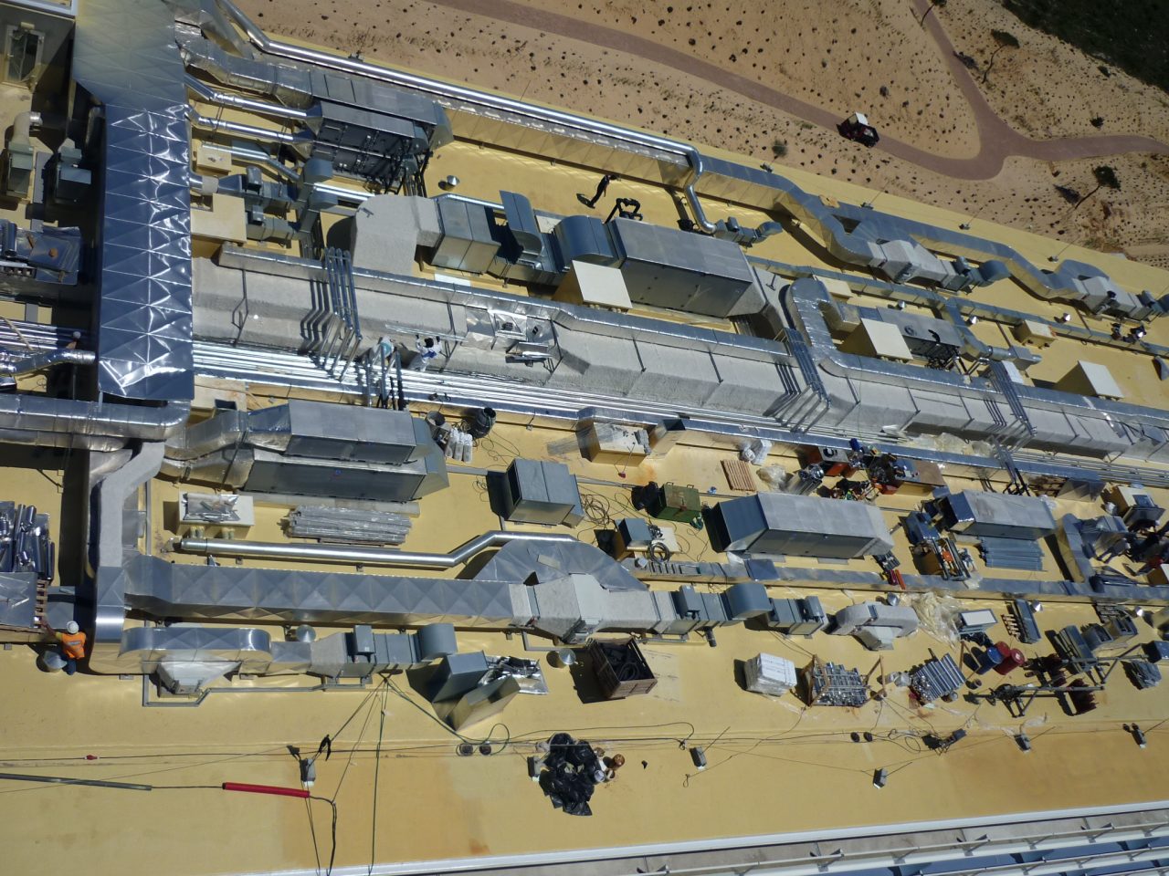 Foi montado na cobertura um estaleiro móvel e o equipamento adaptado de modo a poder-se trabalhar a distâncias deste superiores a 130mts.