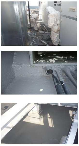 foto 2 – Pormenor da Impermeabilização. Mostra o modo como por projeção se pode revestir qualquer superfície, em contínuo, contornando todos os obstáculos.